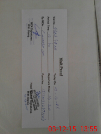 | Monitoring Date: 03-12-2015 | Start Time: 03-12-2015 12:47 PM | End Time: 03-12-2015 01:55 PM | Name of MEA: Ch**** Di**** | |