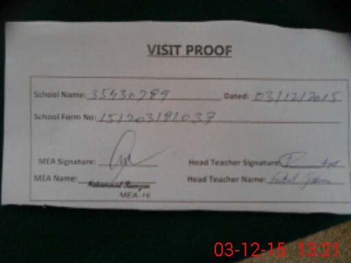 | Attendance Register | Head Teacher | MEA with School | Visit Proof |