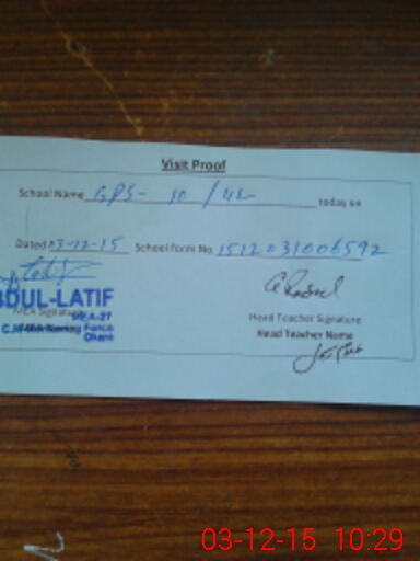 | Attendance Register | Head Teacher | MEA with School | Visit Proof |