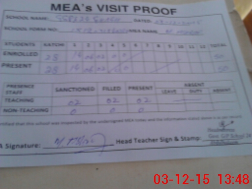| Attendance Register | Head Teacher | MEA with School | Visit Proof |