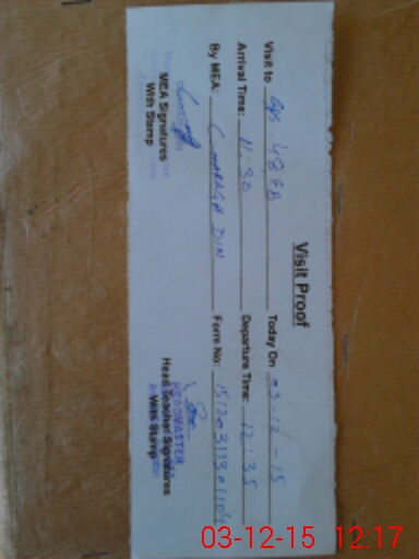 | Monitoring Date: 03-12-2015 | Start Time: 03-12-2015 11:30 AM | End Time: 03-12-2015 12:17 PM | Name of MEA: Ch**** Di**** | |