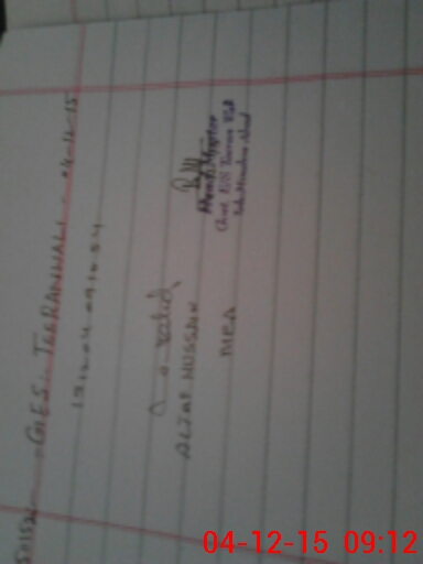 | Monitoring Date: 04-12-2015 | Start Time: 04-12-2015 08:32 AM | End Time: 04-12-2015 09:12 AM | Name of MEA: Al**** Hu**** BN**** | |