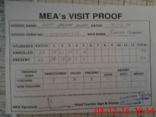 | Certified that this School was Inspected by the Undersigned MEA/DMO Today and the Information Stated Above is as Per Record. | |||||