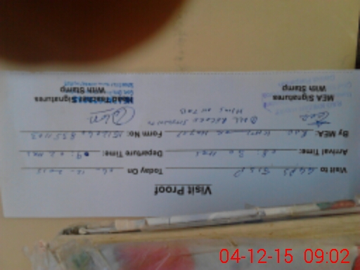 | Monitoring Date: 04-12-2015 | Start Time: 04-12-2015 08:34 AM | End Time: 04-12-2015 09:03 AM | Name of MEA: Kh**** Ha**** (R**** | |