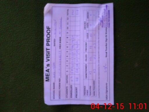 | Attendance Register | Head Teacher | MEA with School | Visit Proof |