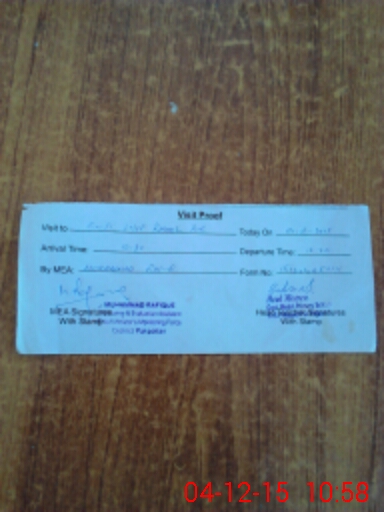 | Monitoring Date: 04-12-2015 | Start Time: 04-12-2015 10:51 AM | End Time: 04-12-2015 11:27 AM | Name of MEA: Mu**** Ra**** | |
