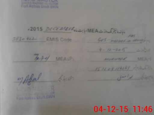 | Monitoring Date: 04-12-2015 | Start Time: 04-12-2015 11:13 AM | End Time: 04-12-2015 11:50 AM | Name of MEA: Mu**** ah**** BN**** 29 | |