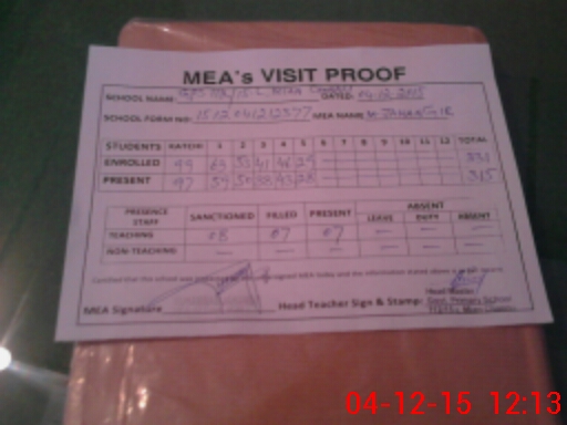 | Attendance Register | Head Teacher | MEA with School | Visit Proof |