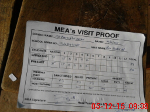 | Attendance Register | Head Teacher | MEA with School | Visit Proof |