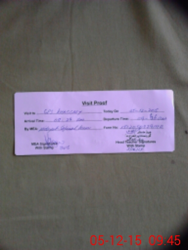 | Monitoring Date: 05-12-2015 | Start Time: 05-12-2015 08:29 AM | End Time: 05-12-2015 09:46 AM | Name of MEA: Hi**** Al**** Kh**** (R**** | |