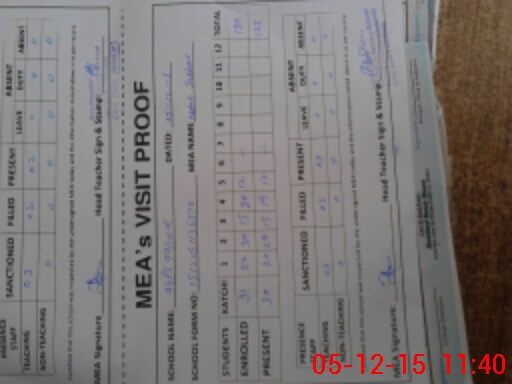 | Attendance Register | Head Teacher | MEA with School | Visit Proof |