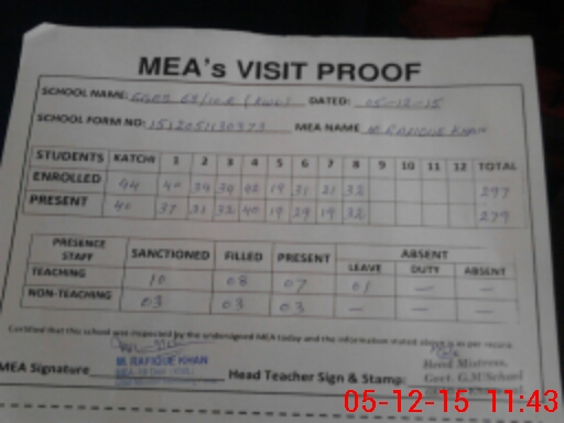 | Certified that this School was Inspected by the Undersigned MEA/DMO Today and the Information Stated Above is as Per Record. | |||||