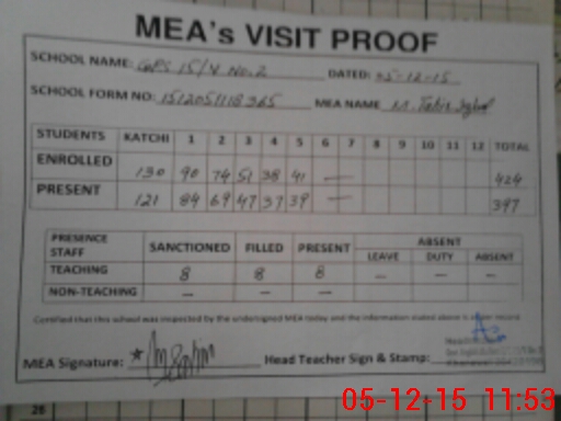 | Attendance Register | Head Teacher | MEA with School | Visit Proof |