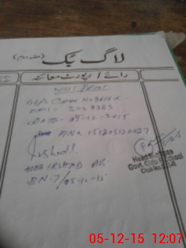 | Name: FE**** KH**** Designation: (School Headmaster's/Headmistress's) PST Phone/Cell Number: 03**** |