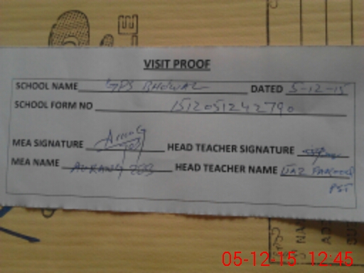 | Attendance Register | Head Teacher | MEA with School | Visit Proof |