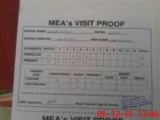 | Attendance Register | Head Teacher | MEA with School | Visit Proof |