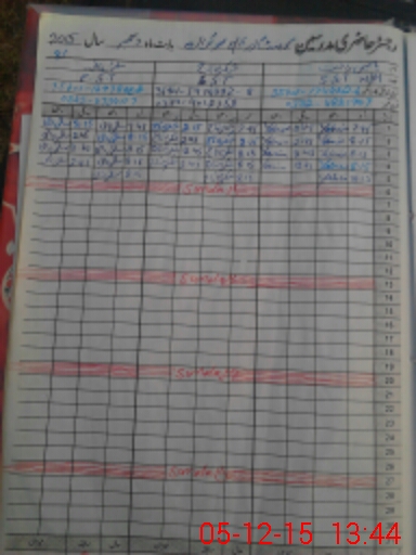 | CNIC | Full Name | Designation | R/C | Absence During Last Calender Month |