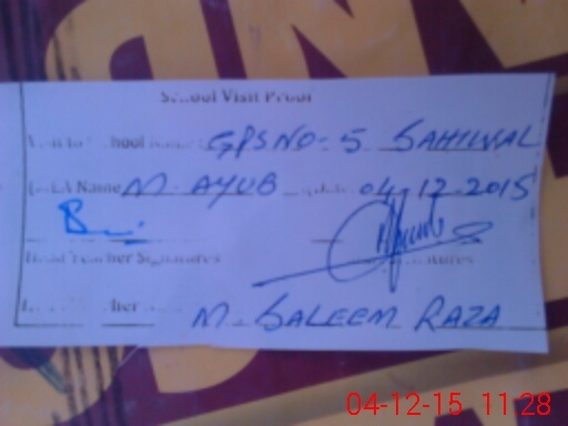 | EMIS Code: 38450215 | Name of School: GPS NO.5 SAHIWAL | |||