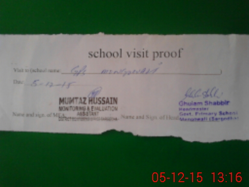 | Attendance Register | Head Teacher | MEA with School | Visit Proof |