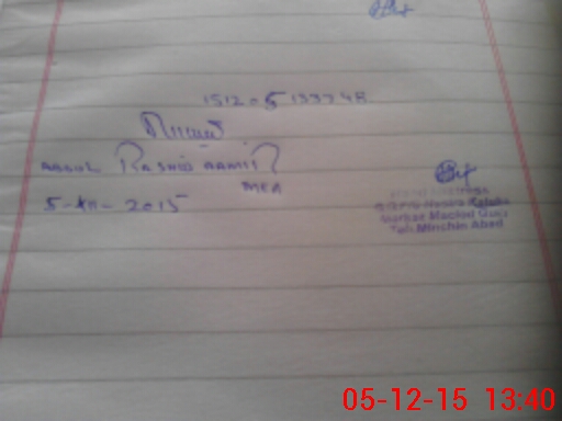 | Monitoring Date: 05-12-2015 | Start Time: 05-12-2015 01:27 PM | End Time: 05-12-2015 01:47 PM | Name of MEA: Ab**** Ra**** Am**** BN**** 28 | |