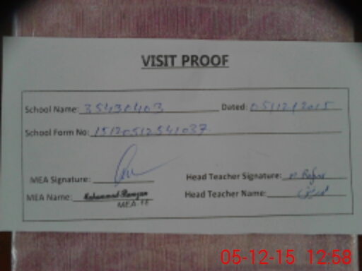 | Attendance Register | Head Teacher | MEA with School | Visit Proof |