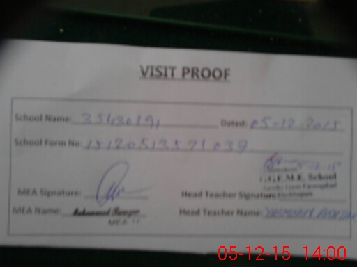| Attendance Register | Head Teacher | MEA with School | Visit Proof |