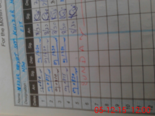 | CNIC | Full Name | Designation | R/C | Absence During Last Calender Month |