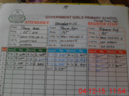 | CNIC | Full Name | Designation | R/C | Absence During Last Calender Month |