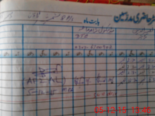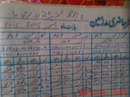 | Name: Um**** Hu**** Designation: (School Headmaster's/Headmistress's) PST Phone/Cell Number: 03**** |