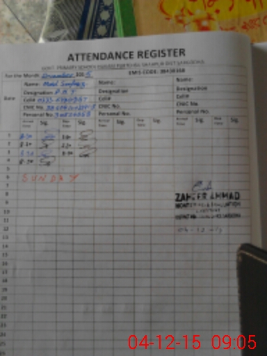 | CNIC | Full Name | Designation | R/C | Absence During Last Calender Month |