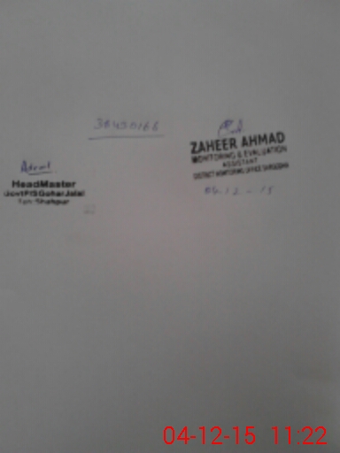 | EMIS Code: 38430166 | Name of School: GPS GOHAR JALAL | |||