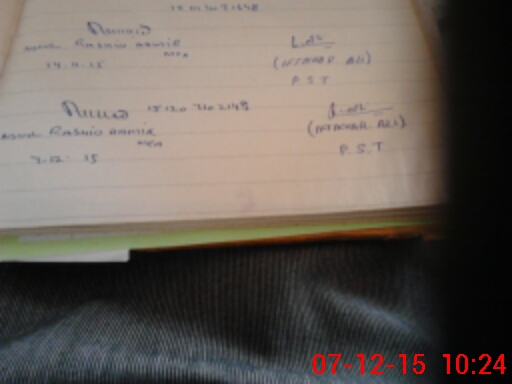 | Monitoring Date: 07-12-2015 | Start Time: 07-12-2015 10:09 AM | End Time: 07-12-2015 10:25 AM | Name of MEA: Ab**** Ra**** Am**** BN**** 28 | |