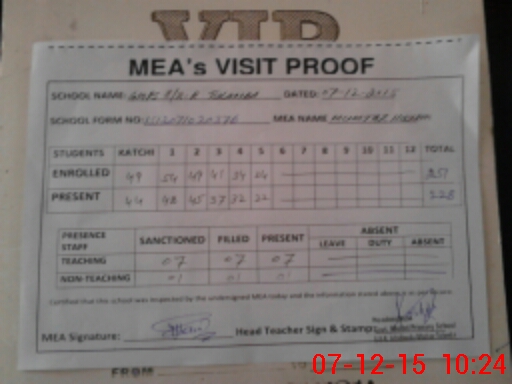 | Certified that this School was Inspected by the Undersigned MEA/DMO Today and the Information Stated Above is as Per Record. | |||||