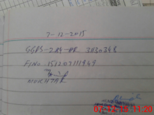 | Monitoring Date: 07-12-2015 | Start Time: 07-12-2015 11:03 AM | End Time: 07-12-2015 11:24 AM | Name of MEA: Mu**** ah**** BN**** 29 | |