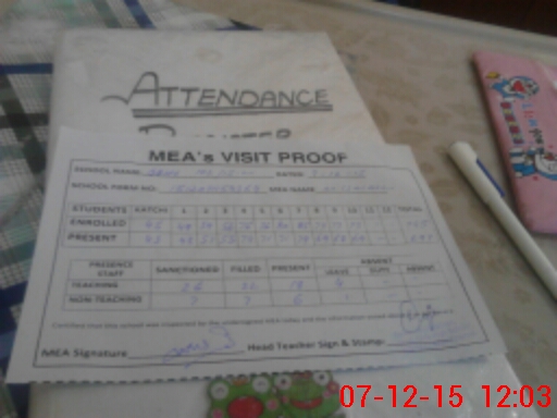 | Attendance Register | Head Teacher | MEA with School | Visit Proof |