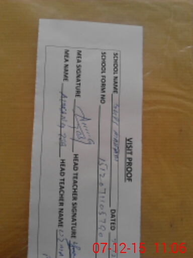 | Attendance Register | Head Teacher | MEA with School | Visit Proof |