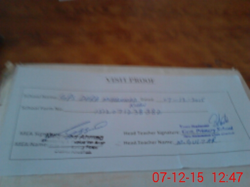 | Attendance Register | Head Teacher | MEA with School | Visit Proof |