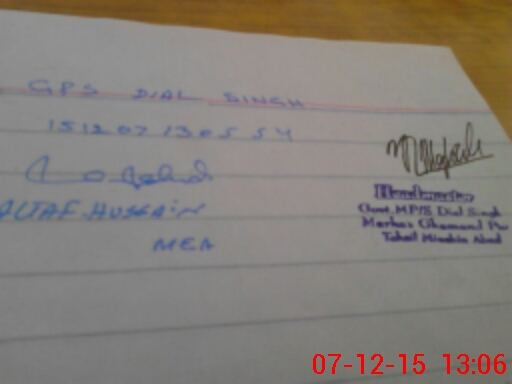 | PP No.: 238 | NA No.: 166 | Mauza: DIAL SINGH | UC Name: SAID ALI | UC No.: 5 |