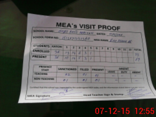 | Attendance Register | Head Teacher | MEA with School | Visit Proof |