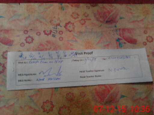 | Attendance Register | Head Teacher | MEA with School | Visit Proof |