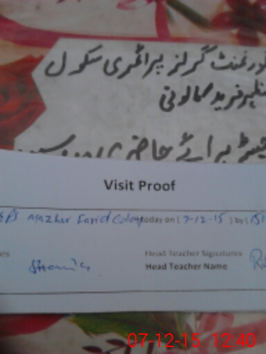 | EMIS Code: 31340385 | Name of School: GGPS MAZHAR FARID COLONY | |||