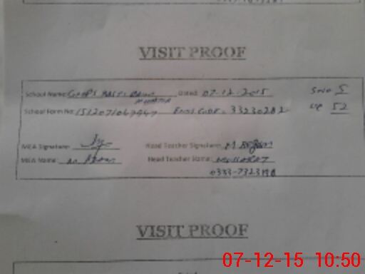 | Attendance Register | Head Teacher | MEA with School | Visit Proof |