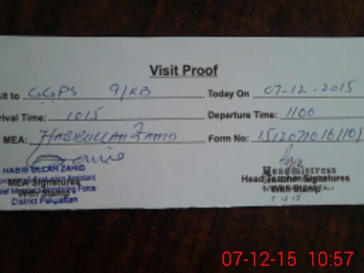 | Attendance Register | Head Teacher | MEA with School | Visit Proof |