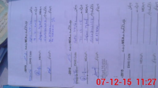 | Monitoring Date: 07-12-2015 | Start Time: 07-12-2015 10:38 AM | End Time: 07-12-2015 11:29 AM | Name of MEA: Za**** Iq**** BN**** | |