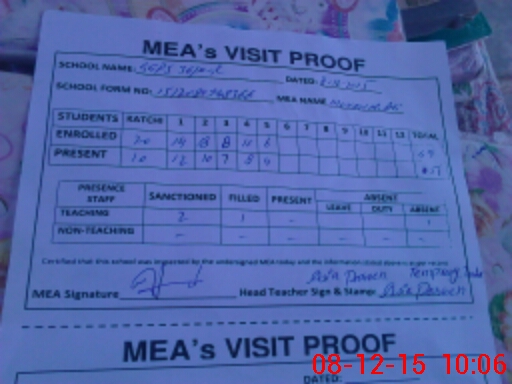 | Attendance Register | Head Teacher | MEA with School | Visit Proof |