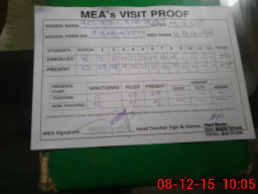 | Certified that this School was Inspected by the Undersigned MEA/DMO Today and the Information Stated Above is as Per Record. | |||||