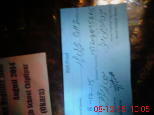 | Name: Za**** Ah**** Designation: (School Headmaster's/Headmistress's) Headmaster Phone/Cell Number: 03**** |