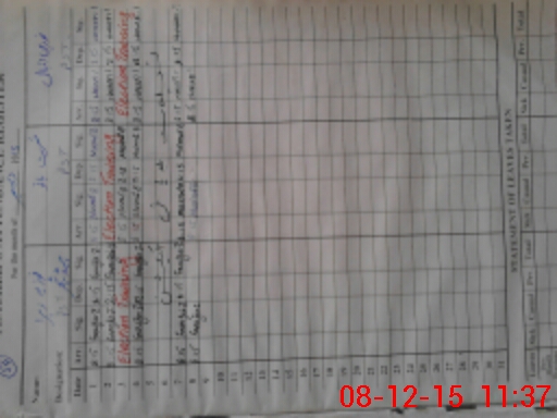 | CNIC | Full Name | Designation | R/C | Absence During Last Calender Month |