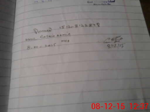 | Monitoring Date: 08-12-2015 | Start Time: 08-12-2015 11:59 AM | End Time: 08-12-2015 12:39 PM | Name of MEA: Ab**** Ra**** Am**** BN**** 28 | |