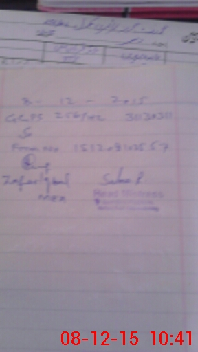 | Monitoring Date: 08-12-2015 | Start Time: 08-12-2015 10:03 AM | End Time: 08-12-2015 10:43 AM | Name of MEA: Za**** Iq**** BN**** | |